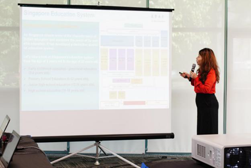 游學(xué)結(jié)業(yè)儀式,特地選擇在學(xué)術(shù)氛圍濃郁的新加坡國(guó)立大學(xué)舉行,Vivien校長(zhǎng)現(xiàn)場(chǎng)為老師們頒發(fā)游學(xué)證書(shū)。