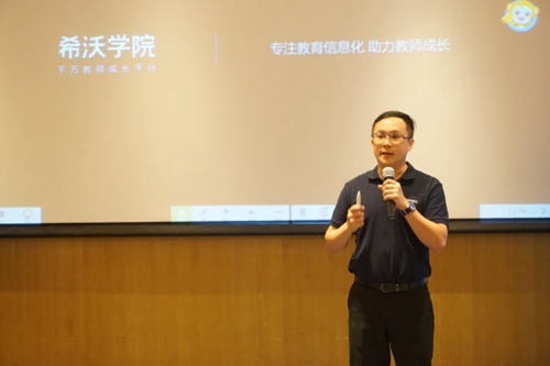 交流中,大家也提及當下名師工作室存在的問題:一是團隊目標不清晰,管理過于松散;二是缺乏數據支持,做了事情沒有量化體現;三是影響力有限。基于以上問題,希沃教育研究院的何家鑫老師帶來《專注教育信息化,助力教師成長》的專題分享。