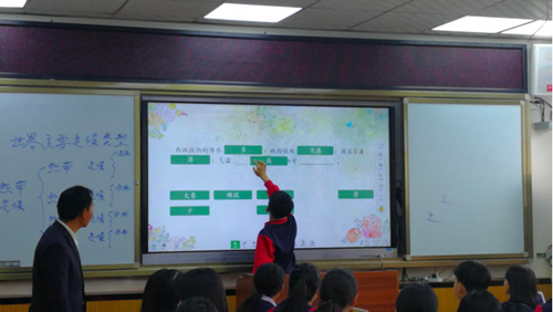 “解析一篇課文的重難點,我會讓學(xué)生分組討論。比如說這個文段運(yùn)用了什么修辭,在文章中該不該刪掉。討論后,讓他們用平板拍照,上傳至一體機(jī)�!倍卫蠋煱l(fā)現(xiàn),因為有了展示任務(wù),學(xué)生就會試著動動腦,動動手。