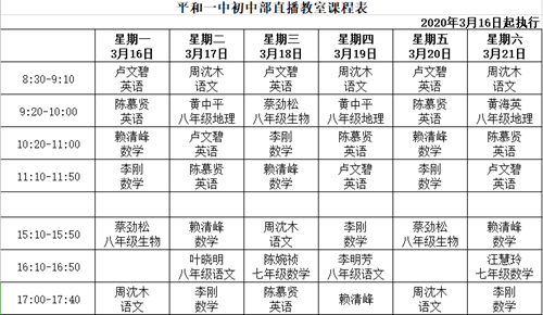而學校初中部的老師經過多次交流探討,結合學生在家學習情況,制定科學合理的課堂表,充分利用信息化教學的工具,有效保障學生居家學習的效果。