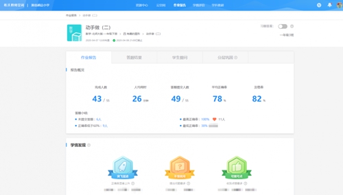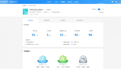 “我們班上有55個學生,在以往,每次手動批改作業(yè),我都要耗費好多時間。”趙老師說:“可是這一次,使用希沃易課堂的‘自動批改’功能,批改作業(yè)的效率一下子就提高了,20分鐘就可以批改完畢。而且希沃易課堂自動生成的‘作業(yè)報告’,讓我更清楚掌握孩子們在家學習情況,我可以把更多時間花在如何幫助孩子們查漏補缺上。”