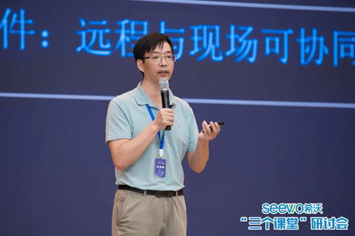 希沃錄播事業部產品經理譚思奇從“老師學得會才是好產品”、“錄播產品的穩定高于一切”,“每堂課都讓學生全情投入”以及“連接一切可連接的(最大限度復用已有多媒體設備)”四個角度分別闡述了希沃錄播的產品設計與研發理念。他表示,教師的成長也同樣重要,因此,希沃錄播在助力教師成長方面也思考與做了很多:績效數據可視化、精品課完整觀摩教研、區域名師名校認證。最后,他說:“我們一直懷抱著敬畏之心打磨希沃錄播,希望與教育工作者們一起讓‘三個課堂’落地生根,我們希望在未來的某一天實現孔子兩千多年前‘有教無類’的理想�!�