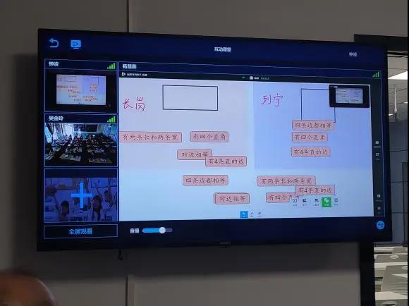 當數學學科鐘老師在交互智能平板進行板書時,板書的內容能夠實時傳遞到遠端上課的兩個鄉鎮教室,分課堂的學生們也能同步進行板書內容的互動。鐘老師表示:“專遞課堂還原了本地課堂教學場景的同時,也拉近了老師與遠端學生的距離,從而改善課堂效果,充分的調動學生積極性。”