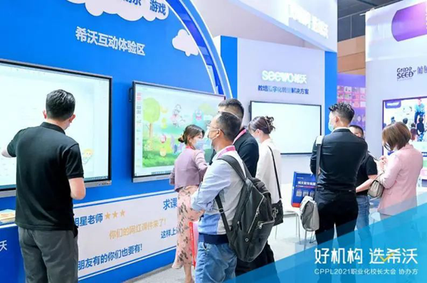 此外,為了讓用戶更充分了解希沃在教培領(lǐng)域的產(chǎn)品以及服務(wù)體驗(yàn),希沃于2021CPPL現(xiàn)場(chǎng)特意打造了沉浸式的品牌展區(qū),分別設(shè)置希沃互動(dòng)體驗(yàn)區(qū)、校園文化展示等,全面展示希沃教培互動(dòng)式場(chǎng)景解決方案。憑借著過硬的產(chǎn)品實(shí)力和優(yōu)質(zhì)服務(wù)體驗(yàn),希沃展區(qū)迅速成為現(xiàn)場(chǎng)人群焦點(diǎn),眾多教培校長紛紛前來展區(qū)觀摩體驗(yàn)、咨詢了解。為期3天的大會(huì),希沃展區(qū)人氣異常火爆。