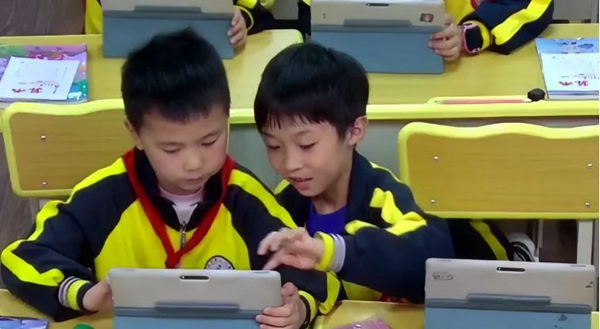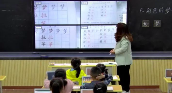 語文課上,在初讀課文后,為了強化生字詞學習,李老師將設計的教學活動任務推送至學生平板端,學生們隨即全員參與到生字詞認讀游戲中,動口朗讀識記,學生們興趣盎然,積極發言。聶老師則巧妙地將學生規范書寫的訓練,用學生平板拍照上傳進行展示。學生們知道自己的書寫練習會呈現在班級的教學一體機上,動手書寫的時候格外認真投入。此外,在數學的學習中,袁老師根據互動答題中學生的學習反饋數據及時掌握學生學情,針對學生薄弱點及時精講點撥。