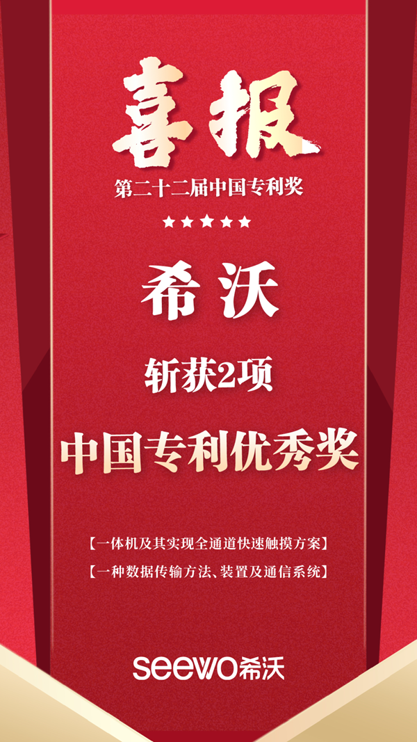 在中國教育信息化行業,希沃是唯一一家在本屆中國專利獎中榮獲2項中國專利優秀獎的企業。