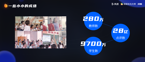 五周年紀念活動開始,由班優的老朋友——希沃軟件平臺負責人郭瀟分享班優五周年的故事。從2015年春“用軟件幫助老師進行課堂管理”的構思出現,到現在班優用戶突破2200萬*,累計點評次數超過28億*,班優一直致力于解決課堂管理中出現的真實問題,得到越來越多老師的喜愛。