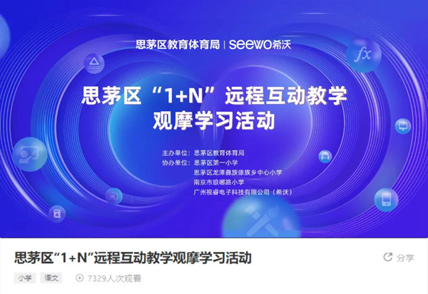 本次觀摩學(xué)習(xí)活動(dòng)主要以“希沃公益行-千里共課堂計(jì)劃”為背景,設(shè)置了建設(shè)規(guī)劃、互動(dòng)教學(xué)觀摩、總結(jié)展望等活動(dòng)版塊,依托希沃“1+N互動(dòng)課堂”信息教育技術(shù)系統(tǒng),讓來自思茅區(qū)第一小學(xué)的師生與龍?zhí)缎W(xué)的師生能通過網(wǎng)絡(luò)“共聚一堂”完成三堂遠(yuǎn)程同步觀摩課。同時(shí),此次活動(dòng)還邀請到了南京市瑯琊路小學(xué)一同交流學(xué)習(xí),真正推進(jìn)教育幫扶的進(jìn)度。為確保“1+N互動(dòng)課堂”推進(jìn)的統(tǒng)籌性、高效性,在前期已對學(xué)校教研教務(wù)、電教老師等進(jìn)行了統(tǒng)一性、系統(tǒng)性部署與業(yè)務(wù)培訓(xùn)。