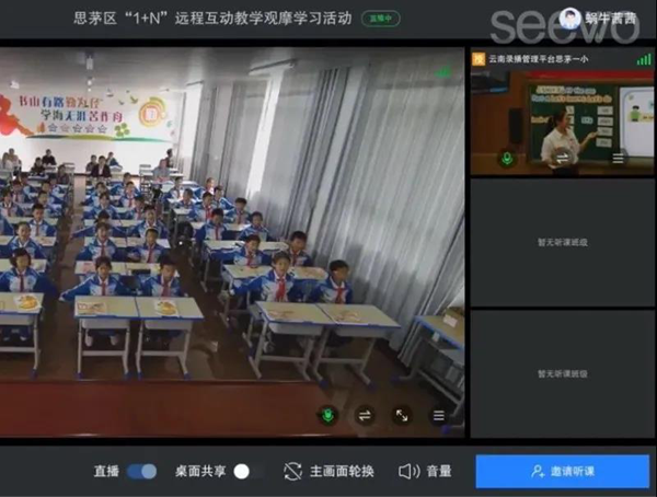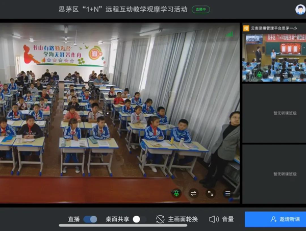 2021年11月16日,一場“城鄉(xiāng)互助,跨省聯(lián)動(dòng)”的遠(yuǎn)程互動(dòng)教學(xué)應(yīng)用試點(diǎn)觀摩學(xué)習(xí)活動(dòng)在思茅區(qū)第一小學(xué)順利開展。活動(dòng)以思茅區(qū)第一小學(xué)為主會(huì)場,思茅區(qū)龍?zhí)吨行男W(xué)及南京市瑯琊路小學(xué)作為分會(huì)場,并面向整個(gè)普洱市思茅區(qū)、丘北縣、蘭州市城關(guān)區(qū)等其它區(qū)開展直播,線上累計(jì)觀看達(dá)7300多人次。