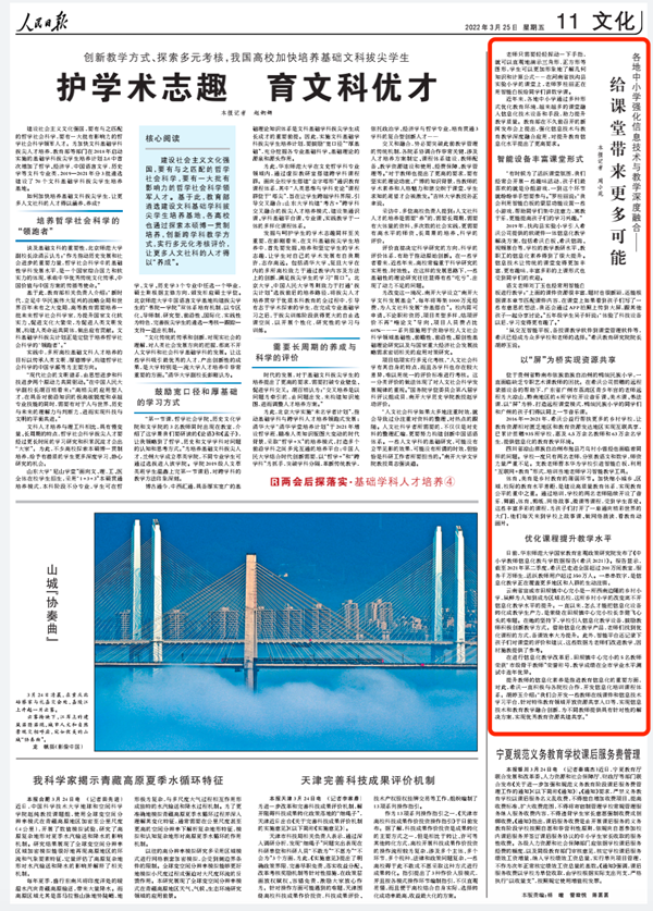 3月25日,人民日報A11文化版發表《各地中小學強化信息技術與教學深度融合——給課堂帶來更多可能》文章報道希沃,以下為原文: