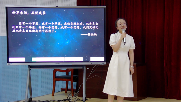 緊接著,來自運城鹽湖區錢學森科技實驗小學的希沃杏壇導師石榛帶來了《信息化環境下的課堂教學》課題分享。石老師從教學硬件設備的變革引出信息化教學的話題,通過希沃白板中的一系列課堂活動以及工具,結合實際教學案例描述信息技術在教育教學中的應用場景,深入淺出的說明信息技術手段對于教師課程的幫助以及學生的幫助。