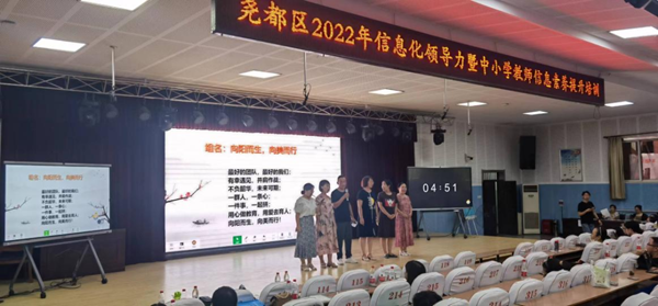 隨后,堯都區教科局電化教育館王劍對2021年至2022年期間堯都區教師信息素養提升進行了匯報總結,并提到通過希沃學苑線上課組,全區5200余名教師參加培訓,通過率達到97%以上。