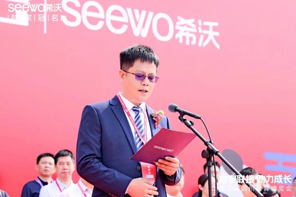 四川教育博覽會(huì)是由四川省教育裝備行業(yè)協(xié)會(huì)主辦的行業(yè)盛會(huì),作為本次展會(huì)的獨(dú)家冠名商,視源股份希沃未來教育集團(tuán)四川營(yíng)銷平臺(tái)總經(jīng)理胡鵠飛出席展會(huì)開幕現(xiàn)場(chǎng),向全體參展人員發(fā)表致辭。