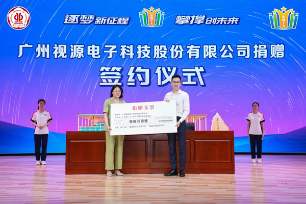 據悉,為進一步發揮優秀學生模范帶頭作用,樹立先進典范,視源股份與廣東工業大學共同設立“視源優秀學生獎學金”項目,以此鼓勵廣工學子精研專業、不斷創新,為粵港澳大灣區發展貢獻力量。活動上,校企雙方代表簽訂捐贈協議,并進行支票頒贈儀式。