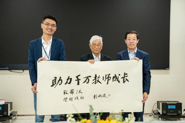 同日,教育家顧明遠先生受聘為希沃終身學術顧問,并為希沃企業、廣東省杏壇智慧教育創新研究院、希沃教師發展中心分別題詞,寄語希沃繼續發揮數字化的力量,助力教師成長和教育高質量發展。