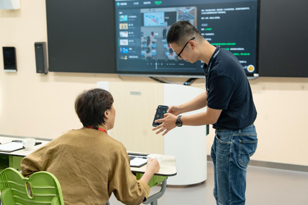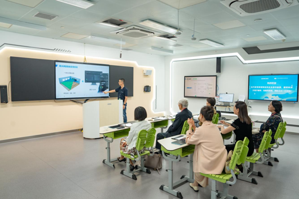 “校園和講壇是向教育家學習、弘揚教育家精神的主戰場、主渠道。”在希沃未來教室,希沃軟件平臺總監劉霄翔向顧明遠先生一行介紹了希沃的最新產品,并提到:“課堂一直是教學主陣地。如何幫助教師上好每一堂課,及時有效地給予一堂課反饋是希沃助力數字化教學的關注點。”這與顧明遠先生提出的“教育的本質是培養思維,培養思維的最好場所是課堂。”這一觀點不謀而合。