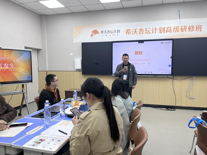 活動伊始,洛陽市澗西區教師發展中心孫少輝老師致辭表示,“一個人也許走得更快,但一群人一定能走得更遠,杏壇導師是師者之師,希望大家珍惜希沃杏壇計劃提供的教師成長平臺,在不斷提升能力的同時,把能力轉化為行動,陪伴、指引其他同行共同打造幸福、美滿的課堂,做終身學習的踐行者”。