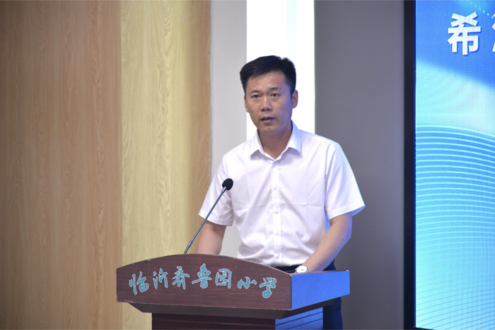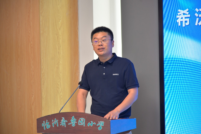 希沃山東營(yíng)銷中心銷售總監(jiān)馬端旭首先對(duì)臨沂齊魯園小學(xué)一直以來(lái)對(duì)教育的熱情投入和無(wú)私奉獻(xiàn)表示感謝。希沃與臨沂齊魯園小學(xué)的合作,不僅是一次校企合作的嘗試,更是雙方共同探索教育數(shù)字化轉(zhuǎn)型的重要舉措。作為一家在教育科技領(lǐng)域有著深厚技術(shù)積累的企業(yè),希沃始終致力于為學(xué)校提供優(yōu)質(zhì)、便捷的教育產(chǎn)品和服務(wù)。堅(jiān)信,教育是培養(yǎng)人的事業(yè),而科技是推動(dòng)教育改革與創(chuàng)新的重要力量。