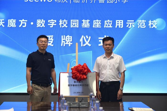 隨后,在所有來(lái)賓的共同見(jiàn)證下,希沃山東營(yíng)銷中心銷售總監(jiān)馬端旭與臨沂齊魯園小學(xué)黨委書(shū)記、校長(zhǎng)馮維峰上臺(tái)簽署希沃魔方·數(shù)字基座應(yīng)用示范校合作協(xié)議,并進(jìn)行示范校授牌儀式。