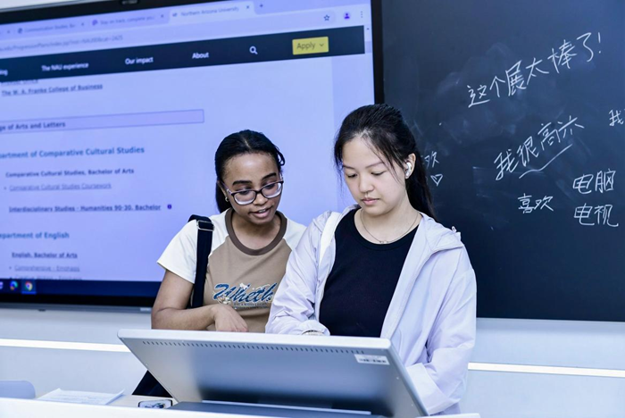 在交互智能平板上,他們手繪自己的畫作,分享在重慶、北京的美好經歷,用中文寫下:“我很高興”、“這個展太棒啦!”