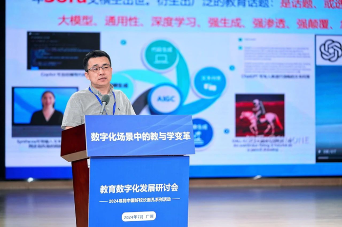 研討會現場,廣州市電化教育館副館長羅勝濤表示,教育數字化轉型推動教育教學模式變革,促進教育優質均衡發展。他強調人工智能技術應立足課堂主陣地,回歸教學;同時強調技術應融入學科,應用為王。