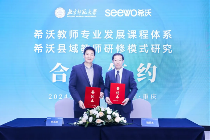 黨的二十大報告強調(diào)要“加快建設(shè)教育強國”,加快建設(shè)高質(zhì)量教育體系,創(chuàng)新教師教育實踐和教師專業(yè)發(fā)展機制模式。當(dāng)前,伴隨素養(yǎng)導(dǎo)向的全過程育人進(jìn)程以及數(shù)字轉(zhuǎn)型、智能升級等發(fā)展趨勢,教師專業(yè)發(fā)展模式創(chuàng)新與體系重塑面臨著躍升性、系統(tǒng)性變革需求。基于此,2024年4月希沃?jǐn)y手北京師范大學(xué)李玉順教授團(tuán)隊進(jìn)行希沃?jǐn)?shù)字化環(huán)境下的教師專業(yè)發(fā)展課程體系及希沃縣域教師研修模式研究合作簽約。