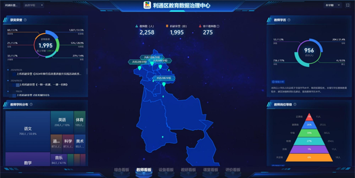 如今,通過希沃魔方·數字基座的教師看板,利通區教育局可以全面掌握全區各個學科的教師人數、學校分布以及崗位等級、學歷構成等信息,清晰呈現的信息數據助力區域建設高質量、創新型教師隊伍,支撐利通教育高質量發展。