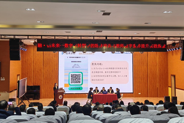 在主題講座環節,望城區中小學教師發展中心副主任殷華以《融合創新,培訓共生,構建教師數字素養提升的望城模式》為題,詳細介紹了望城區教師數字素養提升試點的工作機制、實施模式與推進路徑,并著重介紹了“陪伴式”培訓模式的實踐探索。該模式通過數智化手段實現教師培訓的全過程陪伴,有效提升了培訓的效果。望城區中小學教師發展中心主任周國慶則作了題為《構建數智化支持體系,提升教師數字素養》的專題報告,從望城區教育發展的基本情況出發,闡述了構建數智化支持體系的必要性和可行性。湖南省中小學教師發展中心信息技術科科長楊予平作了題為《能力提升工程2.0工作總結暨教師數字素養提升工作思路》的專題報告,總結了湖南省信息技術應用能力提升工程的發展歷程和取得的成績,并詳細介紹了推進教師數字素養提升的政策、思路、做法及策略。