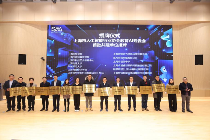 同時,市經信委人工智能發展處處長潘焱、市教委信息化處處長韓崇虎、上海市人工智能行業協會副秘書長黨贊共同啟動上海市人工智能行業協會教育 AI 專委會。