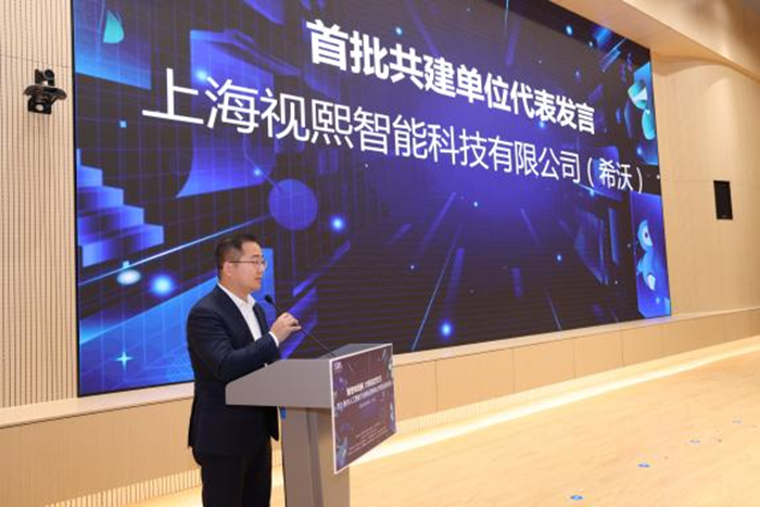 在授牌儀式上,上海視熙智能科技有限公司作為首批共建單位之一上臺接受授牌。