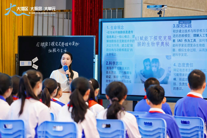 在“AI智能體應用的課堂”展示環(huán)節(jié),生物教師陳美芬?guī)硪惶谩督怄i“細胞之城”的生命密碼》的精彩說課。陳老師熟練運用希沃白板5與希沃AI授課助手,構建了一個虛實結合的“細胞之城”。學生們在克隆猴的探索情境中,通過虛擬仿真等互動模式,將抽象的細胞結構與功能化為直觀體驗,通過AI智能體的應用、充分展現(xiàn)了人機協(xié)同課堂的獨特魅力。