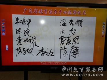 廣東省教育技術中心由原廣東省教育信息中心和原廣東省電化教育館合并而成,主要職能是參與制訂、實施全省教育信息化發展規劃,組織開展相關研究和培訓;指導全省教育網站網校、信息化設施的建設。在揭牌儀式上,彭紅光主任代表中心發表了熱情洋溢的講話,表明了在教育信息化深入的背景下,成立教育技術中心的意義和其未來肩負的使命。揭牌儀式后,各位代表集體合影并在朱超華副廳長的帶領下紛紛駐足為本次會議特別提供的希沃交互智能平板前進行簽名留念,希沃交互智能平板的簽名軟件將各位代表的墨寶紛紛保存下來,記錄廣東省教育信息化發展進程。