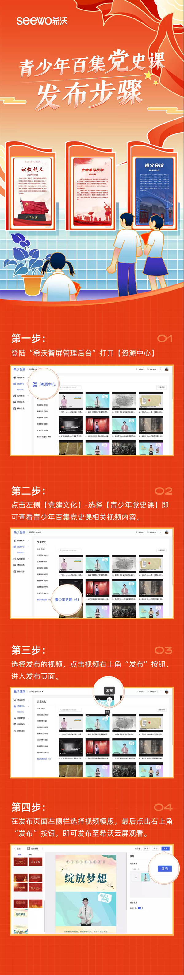在《敬禮!我的黨——100集青少年黨史課》播出后,希沃云屏的資源系統(tǒng)完成了一次更新:青少年黨史課視頻資源上線了。作為百集黨史課唯一教學(xué)支持平臺(tái),希沃將在希沃云屏內(nèi)同步上架黨史課,向全體用戶免費(fèi)開放資源使用權(quán)限。