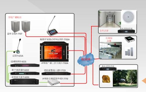 校內應用的數字IP網絡廣播,利用網絡通信ITC/IP協議的優點,采用基于現有的LAN/WAN網絡來建設,安裝時無需單獨布線。