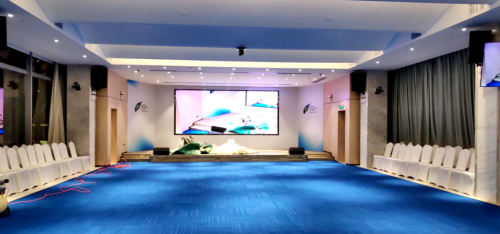 會議室內應用了itc專業擴聲系統,參考國家廳堂擴聲設計標準一級進行設計,分別設計2只400W主音箱安裝在會場前端兩側,2只300W主音箱安裝在會場中端兩側,使得現場聲壓級達到國家一級標準,滿足現場會議擴聲的使用需求。