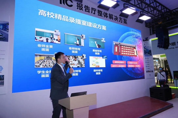 方案的本質是以教育學與心理學理論為基礎,以現代視聽技術為手段,進行課堂模擬教學訓練。在教學過程中可以進行音視同步錄制,結束后自動上傳實訓平臺,學生課下可以通過點播視頻進行學習,老師同樣也可以通過點播實訓教學視頻進行相互探討,為師生提供輕松、靈活地開展交互式教學體驗。在此次搭建的展會現場,實訓課堂憑借其應用中不俗的表現,吸引了多名前來參展的人員久久駐足。
