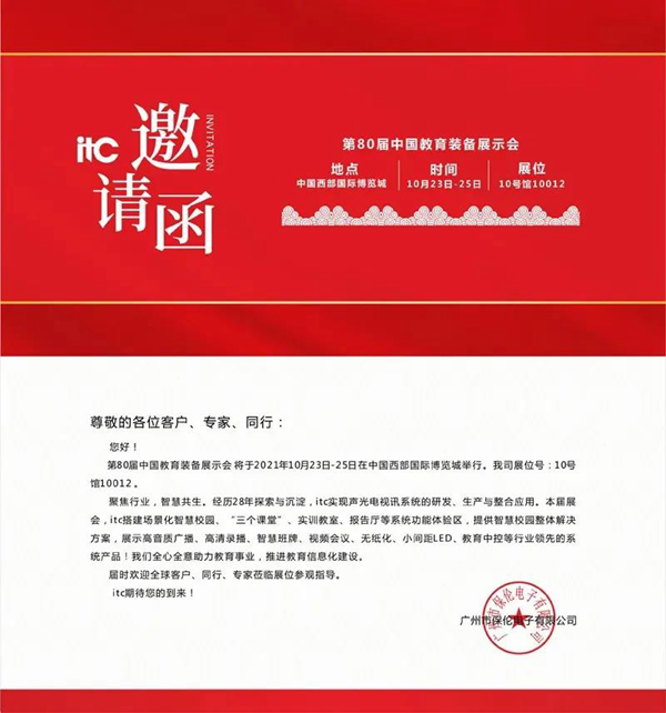 中國教育裝備展是我國乃至全球教育裝備行業規模最大、影響最廣、專業性最強的品牌展會。itc作為音視頻行業制造商,攜創新技術與多款智能產品匯聚于此,帶來了一場高能設備show!