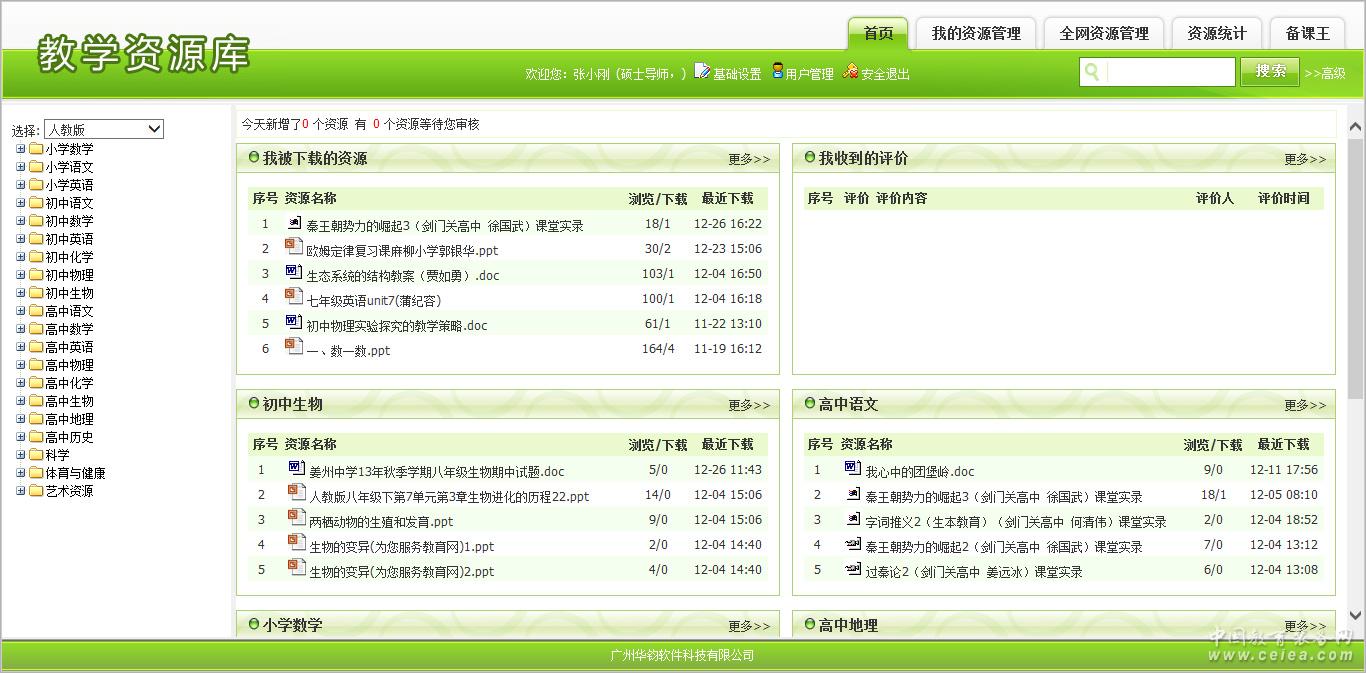 產品詳細介紹該系統可以管理的教學資源包括:媒體素材(包括文本、圖形、音頻、視頻、動畫)、試題素材、案例素材、課件素材、文檔資料素材。 產品涵蓋了小學語文、數學、英語、科學;中學數學、物理、化學、生物、音樂、語文、國防教育、地理、歷史、英語、美術、信息技術,是學生的良師益友,是教師的得力助手。 本系統是教學精品教案、學習指導為輔應的專業教育教學網站。下面以圖文的形式展現教學資源庫網站頁面和資源庫管理平臺。 |
