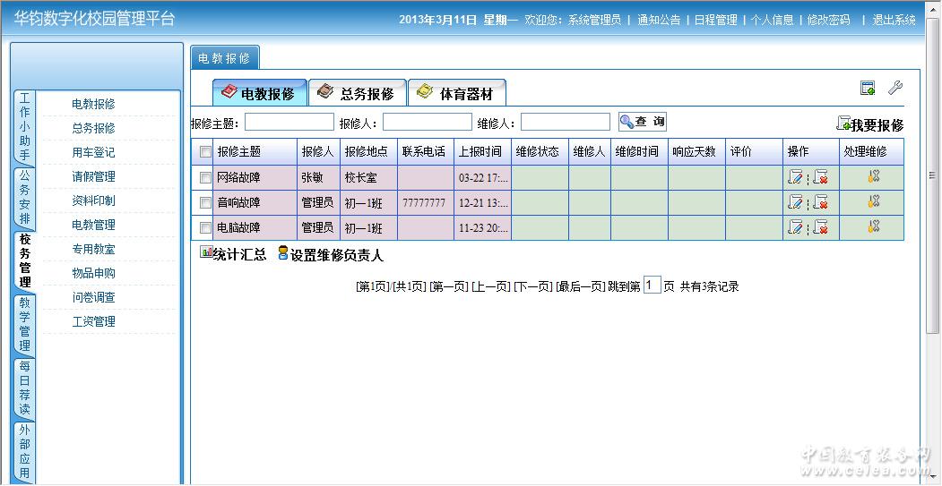 產(chǎn)品詳細(xì)介紹《數(shù)字校園綜合管理系統(tǒng)》是在仔細(xì)研究現(xiàn)代教育環(huán)境下教育信息化對(duì)學(xué)校管理模式改變的基礎(chǔ)上,在近10年的教育改革中提供大量的一線教育管理經(jīng)驗(yàn),結(jié)合數(shù)百個(gè)學(xué)校大量的實(shí)踐經(jīng)驗(yàn)基礎(chǔ)上,開發(fā)出來(lái)的一套面向廣大中小學(xué)的集辦公、管理、公文處理為一體的自由組合軟件,致力于提高中小學(xué)信息化的發(fā)展。