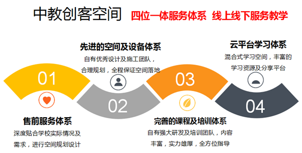 中教啟星提供四位一體的創(chuàng)客師資培養(yǎng)體系,線上線下全方位服務教學。