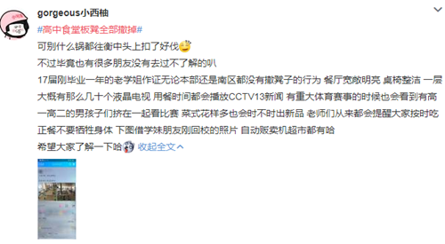 消息曝出來(lái)之后,衡水中學(xué)的校友們紛紛表示“這鍋我們不背”,衡中學(xué)校食堂有凳子、有電視、有空調(diào),飯還很好吃。