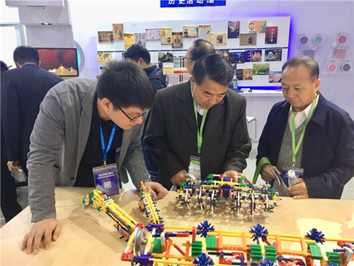 數字星球系統、地理AR沙盤、交互地圖教學系統、VR教學系統、全息教學系統、歷史活動墻、地理綜合實踐套裝、博弈棋盤、立體幾何模型、K’NEX“摩天輪”、littleBits音樂墻……中教啟星地理、歷史、數學、創客全線明星產品悉數亮相,前來體驗咨詢的客戶絡繹不絕,中教啟星在本次展會也收獲頗豐。未來,中教啟星將將繼續秉承“創新、高效、協作、共享”的核心價值觀,通過技術手段和業務模式的不斷創新,讓教研更深入、讓教育更愉悅、讓教學更高效、讓學習更自主。