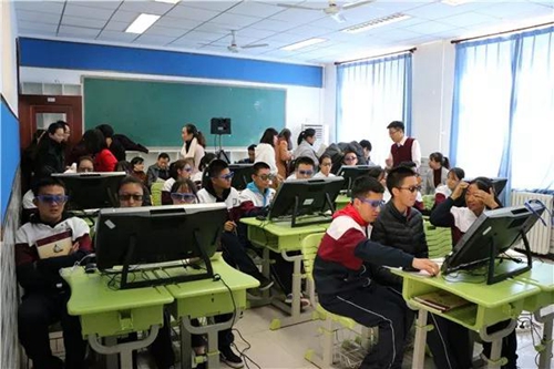 課堂上,學生三人一組,在張老師的引導下,通過中教啟星高中歷史VR教學系統(tǒng)開展小組探究,系統(tǒng)里逼真的歷史場景仿佛就在眼前,通過輕巧的3D追蹤眼鏡和觸筆就能輕松實現(xiàn)人機互動,小組成員之間交流討論也不受任何干擾,VR技術的應用讓課堂教學效率得到了質(zhì)的提高。