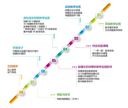中教啟星自2006年以地理學(xué)科為起點,開啟了學(xué)科裝備探索的征程,目前全國有超過6000所學(xué)校的老師在中教啟星數(shù)字化地理專用教室開展教學(xué)。中教啟星基于數(shù)字化與虛擬現(xiàn)實技術(shù)的創(chuàng)新型地理專用教室是指以“數(shù)字化”為主導(dǎo),以數(shù)字星球系統(tǒng)為核心,遵循教育部《中學(xué)地理專用教室建設(shè)規(guī)范》,配備常規(guī)教學(xué)類的交互地圖教學(xué)系統(tǒng);天文實踐類的課程資源包;創(chuàng)新應(yīng)用類的虛擬現(xiàn)實VR教學(xué)系統(tǒng)、地理AR沙盤、全息教學(xué)系統(tǒng)、3D地理教學(xué)系統(tǒng);實驗活動類的地理交互學(xué)具、地理綜合實踐套裝;并輔以教學(xué)通用設(shè)備以及環(huán)境創(chuàng)設(shè),能夠把地理課本上的知識更直觀、生動、全方位的精彩呈現(xiàn),讓學(xué)生打開傳統(tǒng)的思維模式,以一種更加生動活潑的方式學(xué)習(xí)地理,有利于教師教學(xué)活動的開展和學(xué)生學(xué)習(xí)效率的提高。在功能定位上,方案能夠完美解決常規(guī)教學(xué)、實驗教學(xué)、綜合實踐、創(chuàng)新教學(xué)、虛擬現(xiàn)實探究等五方面的教學(xué)需求,并為教學(xué)應(yīng)用培訓(xùn)、教學(xué)教研會議、專家引領(lǐng)成長等提供全方位的服務(wù)支持。