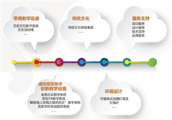 中教啟星歷史學(xué)科創(chuàng)新型專用教室解決方案以數(shù)字化與虛擬現(xiàn)實技術(shù)為核心,讓教學(xué)專用設(shè)備與資源、創(chuàng)新教學(xué)設(shè)備與課程、傳統(tǒng)文化體驗套裝、模型教具及教室文化五大核心模塊真正的融入歷史教學(xué)應(yīng)用中,方案創(chuàng)新應(yīng)用虛擬現(xiàn)實VR教學(xué)系統(tǒng)、歷史交互教學(xué)系統(tǒng)、全息教學(xué)系統(tǒng)等一批虛擬現(xiàn)實設(shè)備和數(shù)字化設(shè)備,能夠優(yōu)化歷史教學(xué)目標、優(yōu)化學(xué)科教學(xué)過程、強化歷史德育意義,打破學(xué)校歷史課程教學(xué)陳舊不變的教學(xué)方式,滿足學(xué)生與教師的需求,幫助學(xué)生構(gòu)建歷史認識、做好歷史教師的腳手架。同時,在富有多樣性、沉浸性的歷史教學(xué)空間中,學(xué)生能夠在教師的引領(lǐng)下,認識人類社會發(fā)展歷程,培養(yǎng)歷史學(xué)科核心素養(yǎng),提高綜合實踐能力,增強對歷史的興趣,激發(fā)創(chuàng)造力。