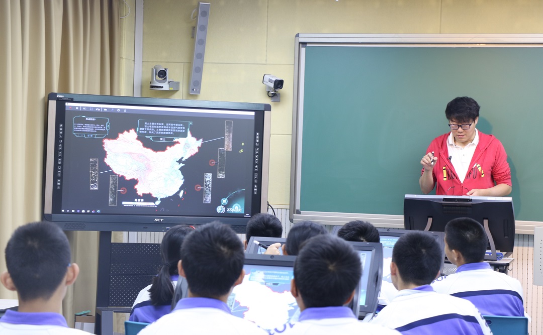 北京一零一中學的地理課上,老師正用寰宇地理VR系統向同學們講解“土壤”一課