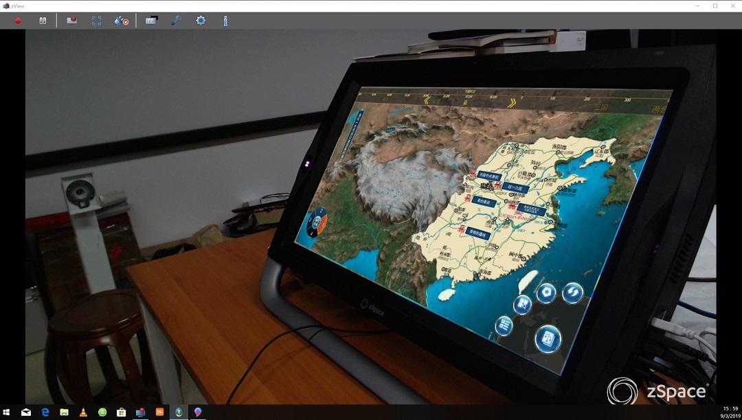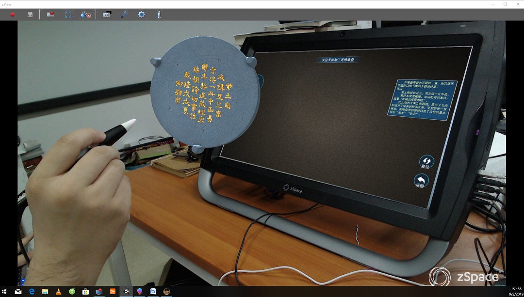 系統依托于桌面級便攜式一體化虛擬現實設備,該設備集成VR、AR、MR等多種信息技術,以擬人化的表現手法,讓文物開口“說話”,讓歷史“活”起來,生動再現從遠古到近代的中華文明進程。