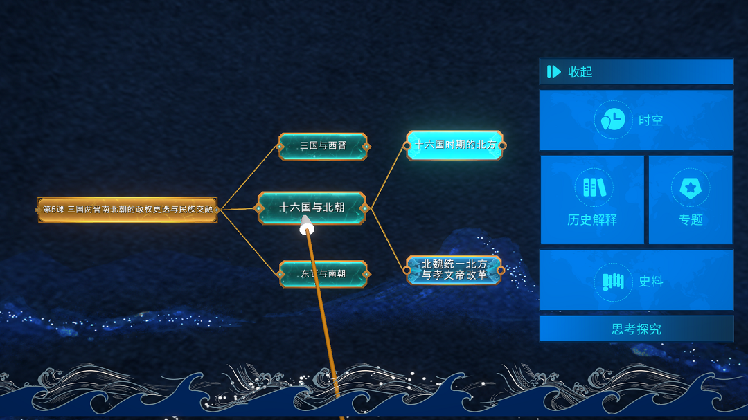 軟件內容設計全面面向五大核心素養,采取時空關系與知識結構相互支撐,相關史料與歷史解釋關聯證明等形式,選擇與教材知識點契合的實物與文獻資料,把3D、VR、AR互動等技術應用于歷史教學當中,整合平面與立體場景構建歷史情境,使之以動態、三維立體的方式呈現出來。將歷史教學中時空久遠、難以觸碰和理解的知識、過程、關系與史觀,以直觀、全景、多維度的形式展現在學生的眼前,促進學生歷史學科知識的掌握與核心素養的提升。