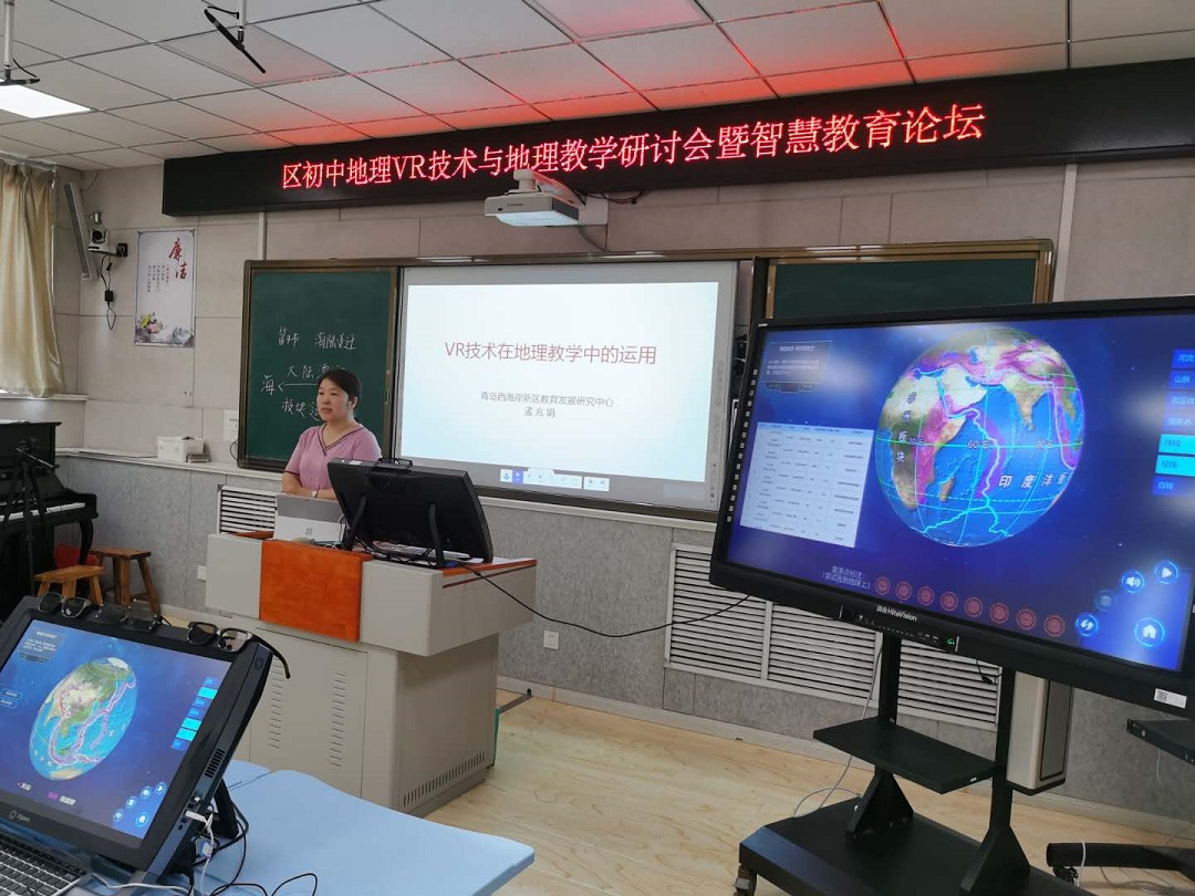 時維九月,序屬三秋。9月25日,青島西海岸新區初中地理VR技術與地理研討會暨智慧教育論壇在青島西海岸新區第四初級中學隆重舉行。青島西海岸新區教育發展研究中心初中地理教研員孟兆娟,青島西海岸新區第四初級中學校長滕學臣,副校長吳德剛以及全區各個學校的地理教師們參加了此次教研活動。