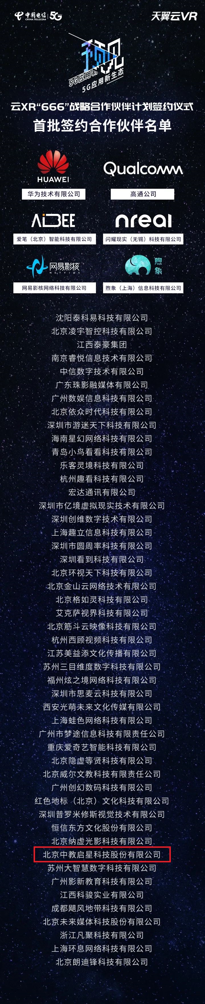 中教啟星憑借領先的行業優勢和優秀的創新能力在眾多企業中脫穎而出,成為首批中國電信云XR“666”戰略合作伙伴計劃中的一員。